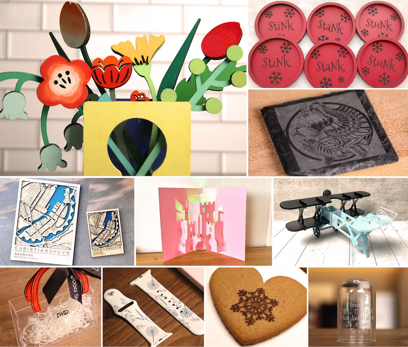 It can engrave on sphere, tilt plane, curved surface and different height object. It can create 3D image on diamond,woods, and acrylics ,etc.