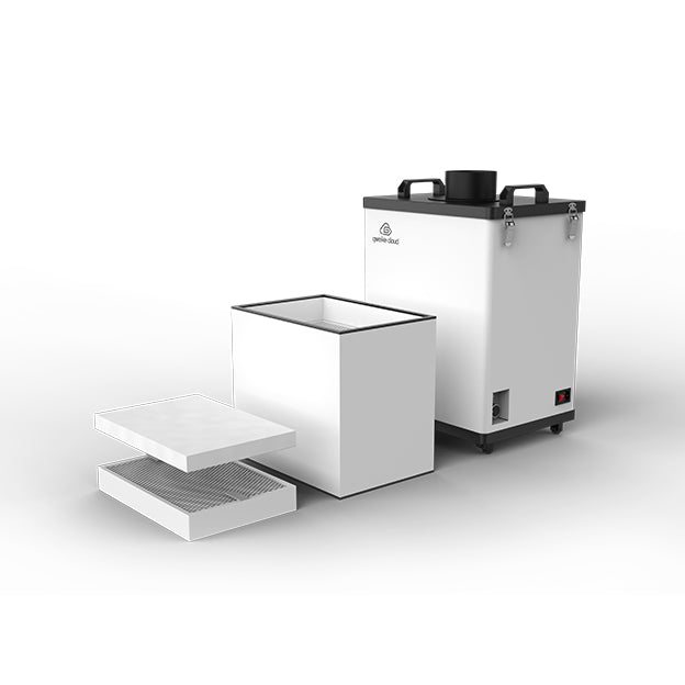 | Notes | No machine control, large filters | More industrial build quality. Only a 2'' hose | No specs found, no manual either. It's from Glowforge | USB interface, sells pre-filters roughly 50% smaller | Roughly 30% the size of the others |