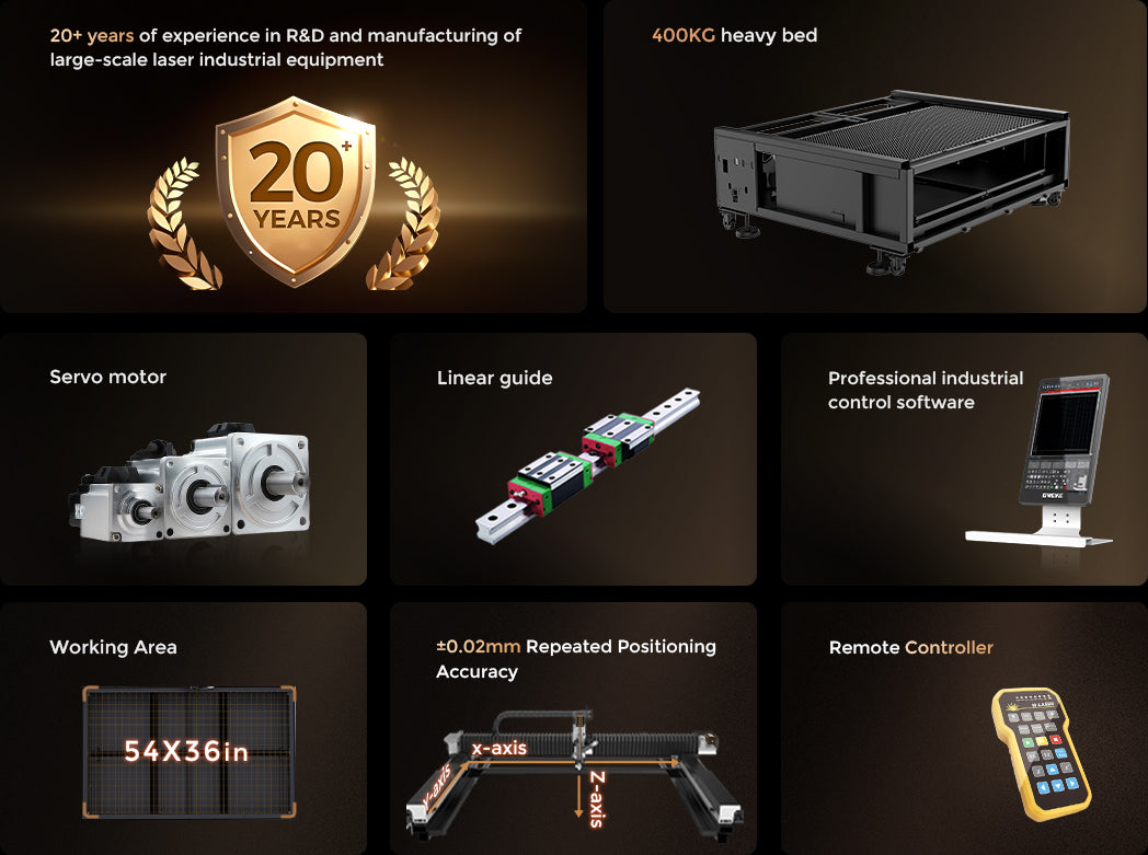 | M3 ULTRA | 1200W Fiber Laser +130W CO₂ | 54in*36in(1380mm*920mm) | $13,999 $17,999 |