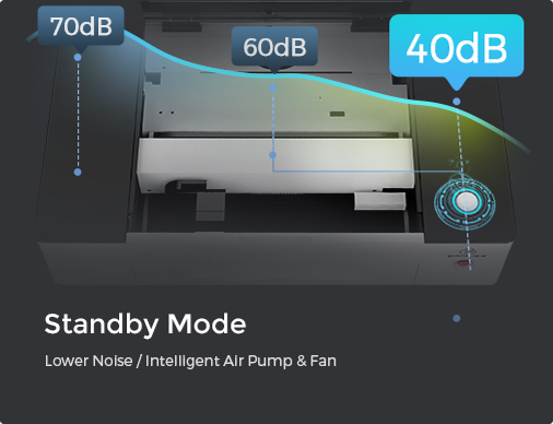 During normal printing, gweike cloud has an average noise level of about 70 dB(A). Equipped with a much quieter fan the speed can be adjusted automatically according to the real-time temperature, realizing a noise level decrease of about 16 dB(A)[3], so that you can truly focus on your making.